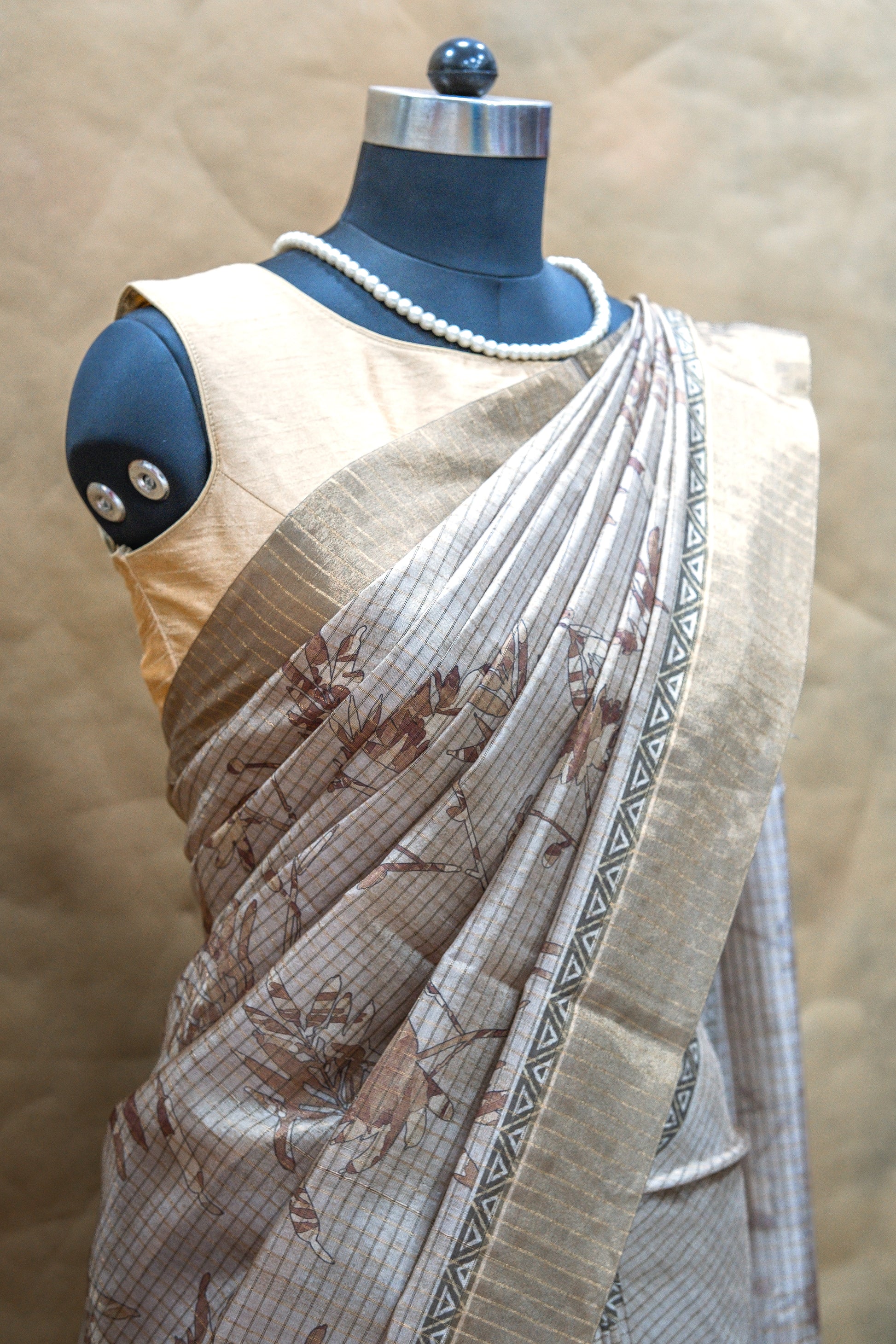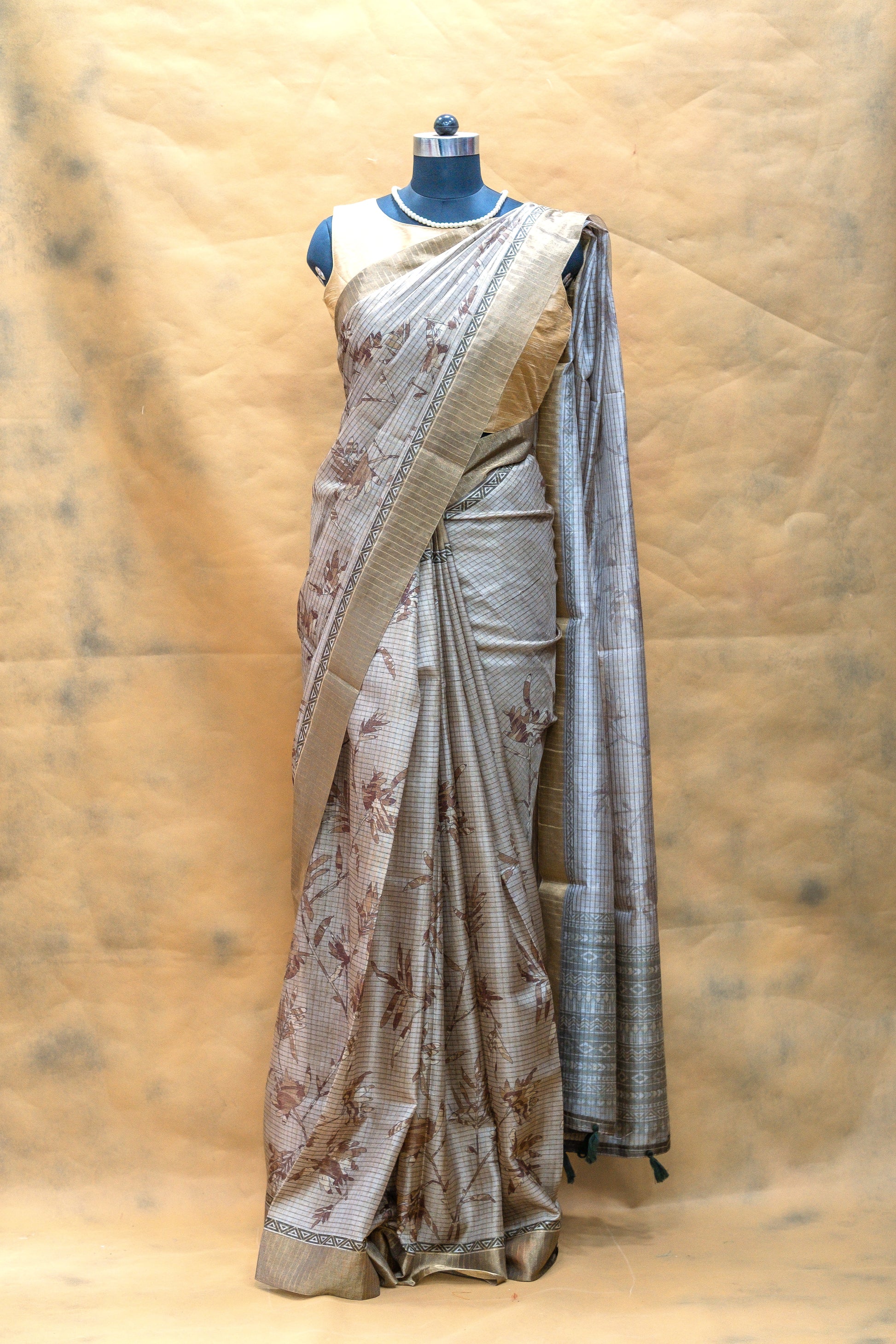 Embrace understated sophistication with our Brown Semi Tussar Saree — a beautiful balance of earthy tones and graceful texture. Crafted from semi tussar silk, this saree offers the rustic charm of traditional tussar with a softer feel and lighter drape, perfect for long hours of elegant wear.